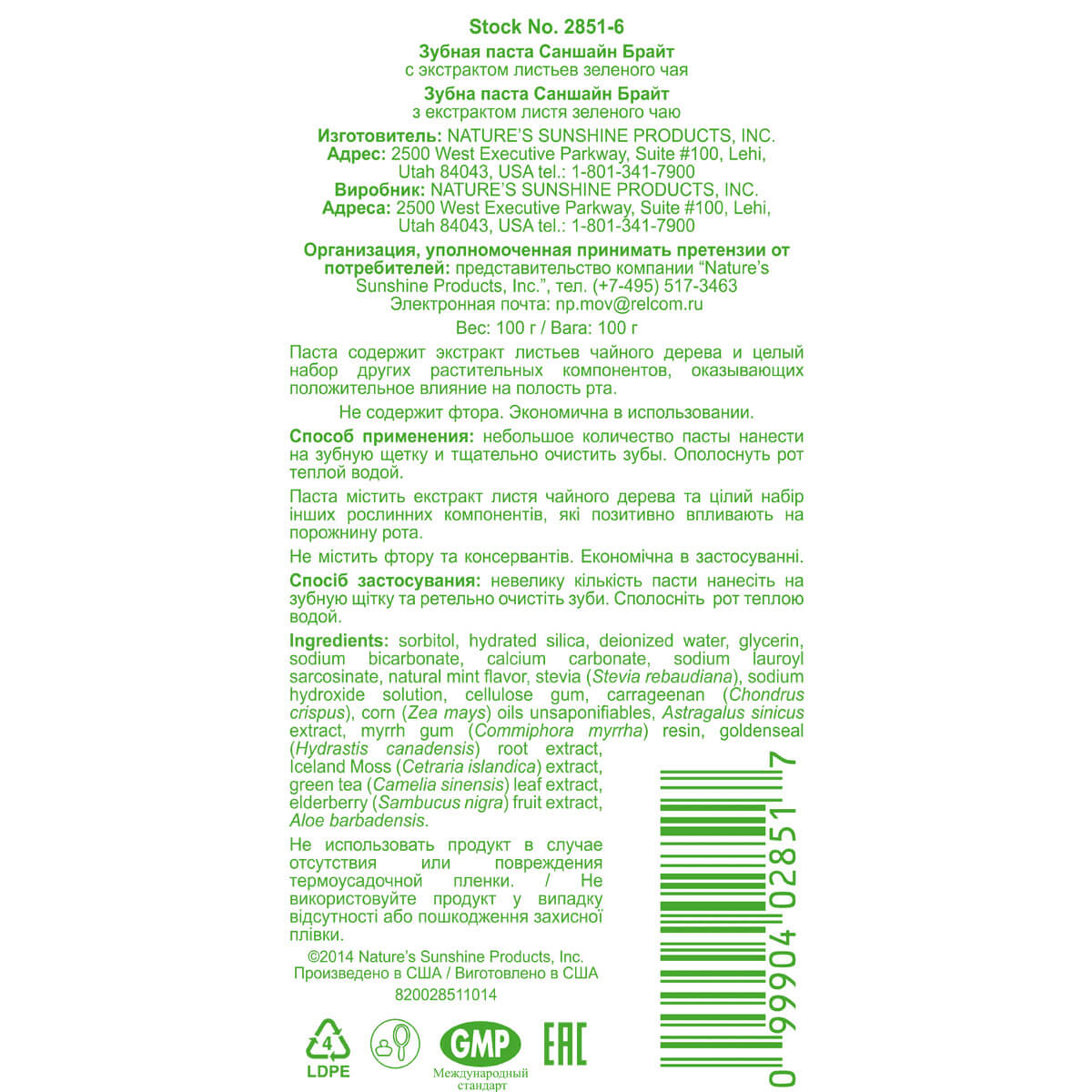 Отсутствие в формуле синтетических ароматизаторов, красителей и грубых абразивов допускают применение "с первого зубика". Кроме того, Sunshine Brite Toothpaste не содержит фториды, которые при приеме в больших количествах интенсивно вытесняют йод, нанося урон щитовидной железе.